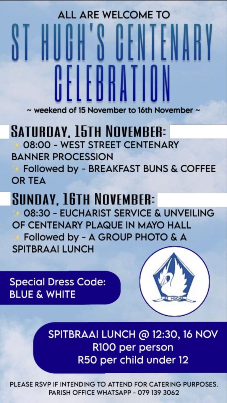Bank: ABSA Newton Park, Branch Code 511 917, Acc.#: 404 948 9350, Acc Name: St Hugh’s Church